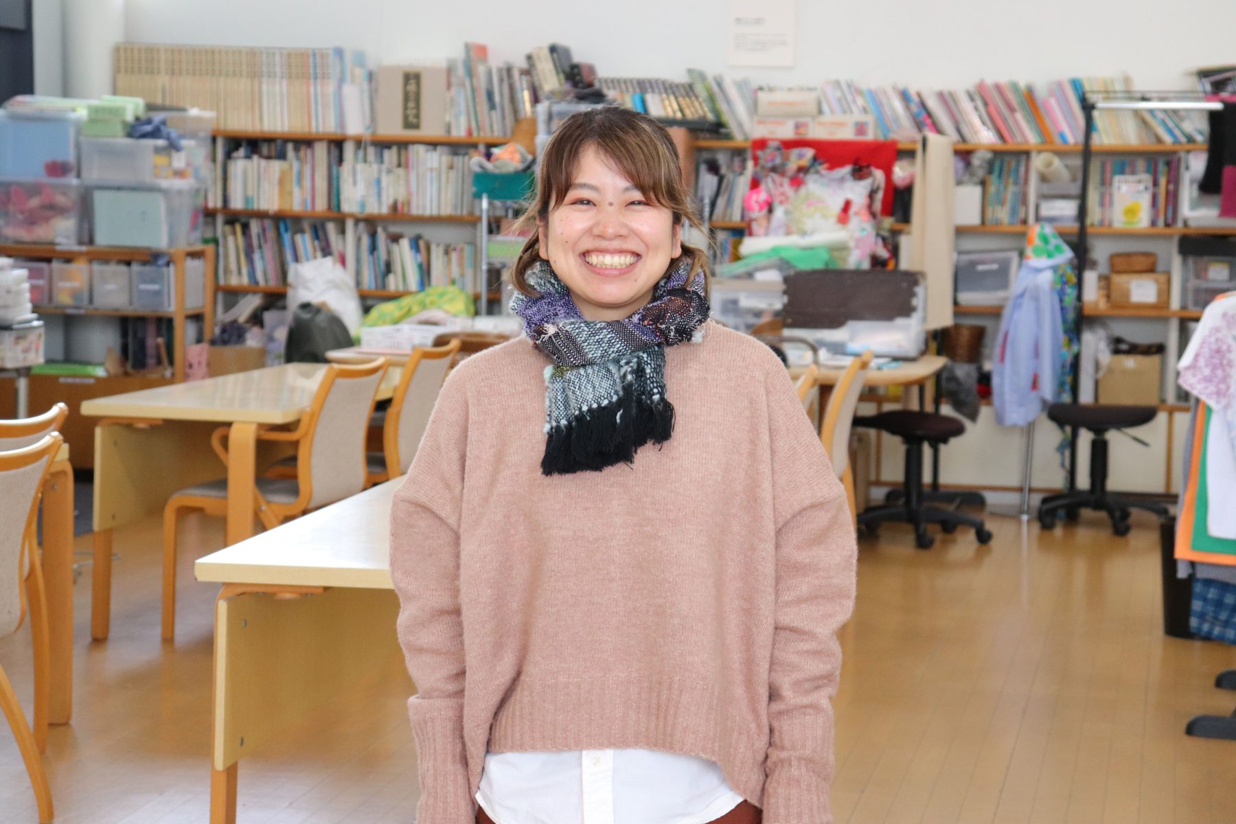 大学の社会福祉実習でたんぽぽの家を知り、そこで働くスタッフと障害のあるメンバーののびのびと自分を表現している姿に魅力を感じて、「自分も一緒にこの場所で働きたい」と思い就職しました。生活支援センターの放課後等デイサービスでは子どもたちの余暇活動を担当しており、《ともに楽しみ、何事にもチャレンジ!》を大切に、プログラムを考えています。その人がその人らしく自由に表現できる場を作れるように、子どもたちと一緒に過ごしています。