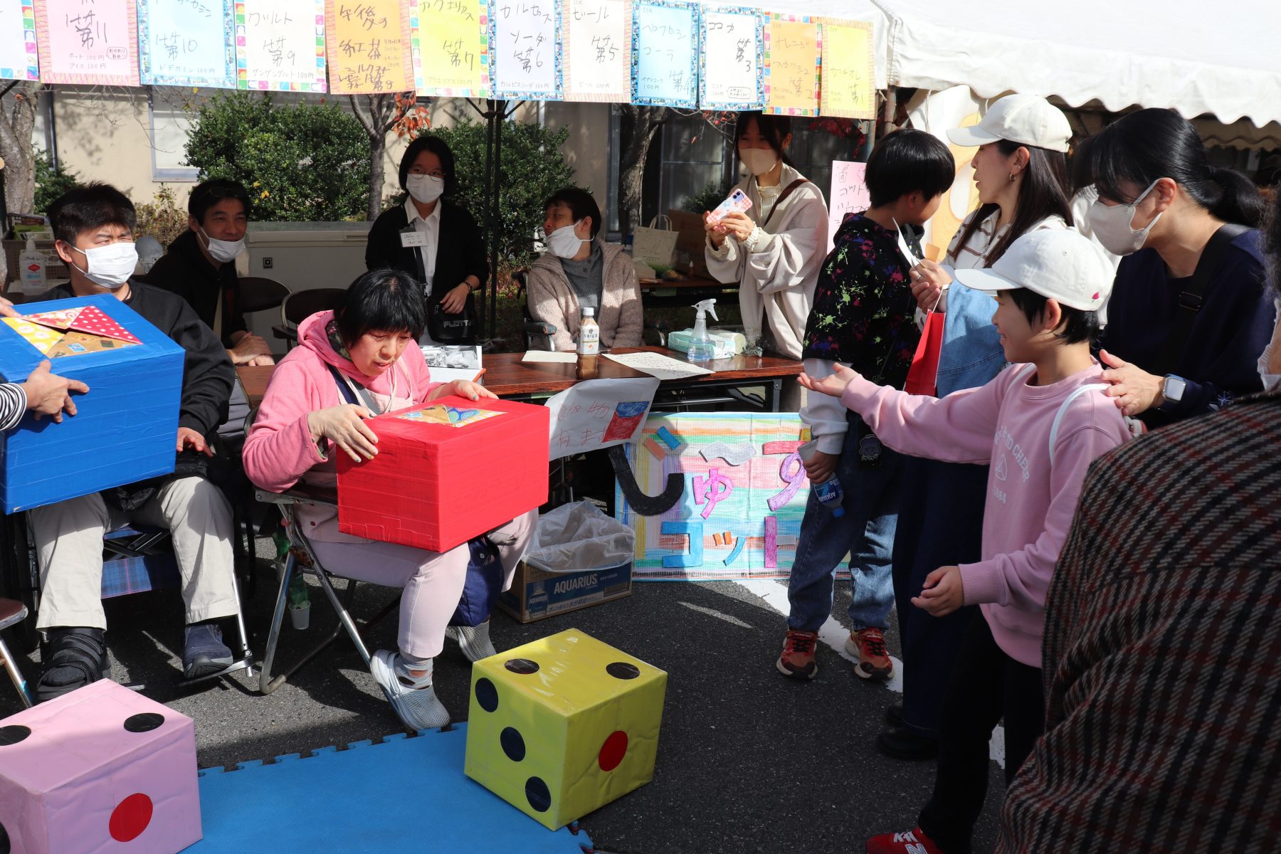 模擬店はメンバーのご家族やボランディアの皆様、別事業所の方々にもご協力頂き、美味しい食べ物や当て物を出店頂いています。もちろんスタッフも各セクションで出店を出し、ベテランスタッフも若手も関係なくそれぞれの腕を奮ったで出し物でお祭りを盛り上げます。